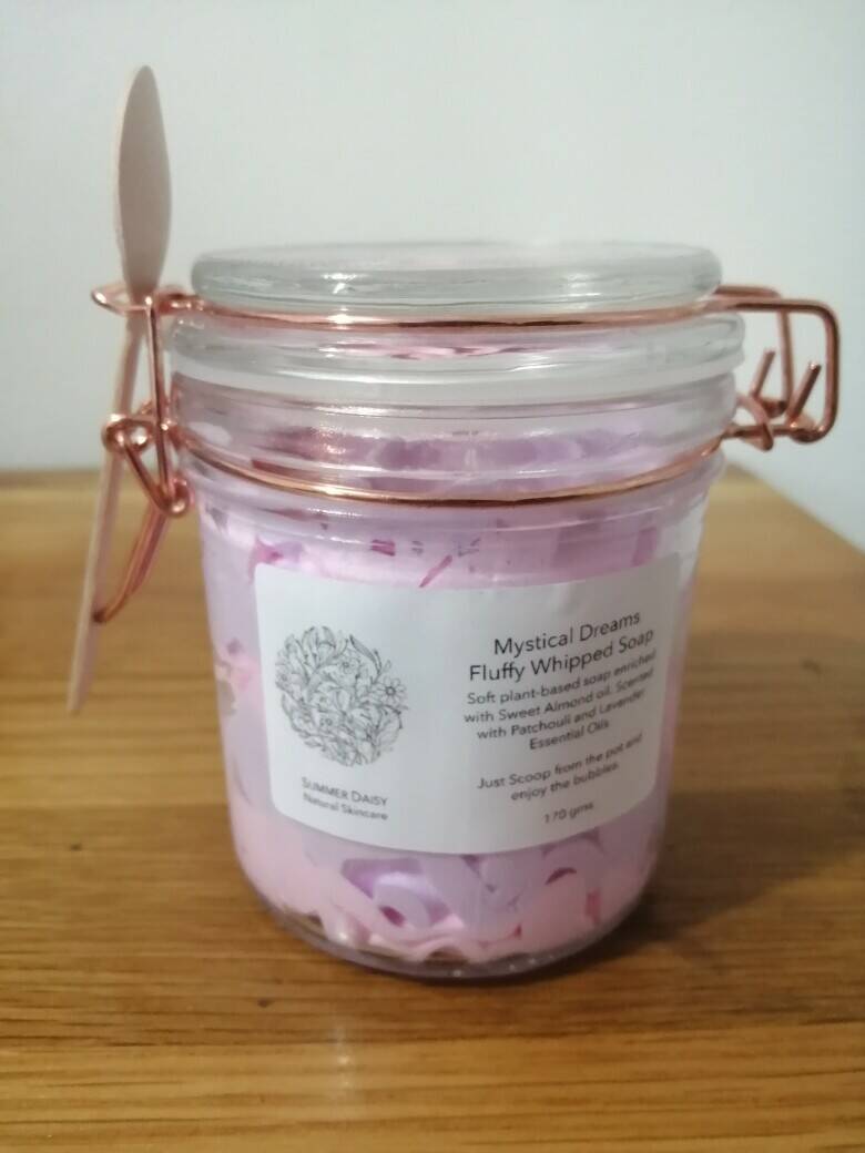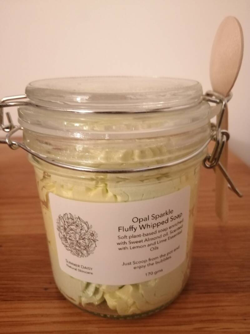 A fluffy creamy soap that is extremely gentle on the skin and great fun to use.